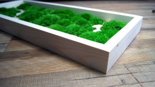 - rama wypełniona stabilizowanym mchem poduszkowym oraz kilkoma krążkami brzozy.