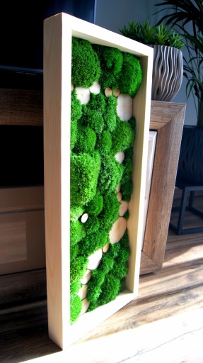 Картина продолговатой формы, рама, подушка из мха, дерево, 30/60 см.