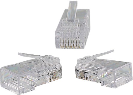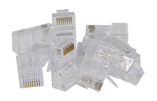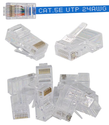 Uniwersalne wtyki RJ45 8p8c kategorii 5e, UTP nieekranowane, do kabli o przekroju żył AWG24-26. pakowane po 10 szt.