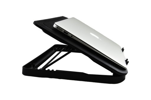 Łatwy dostęp do przednich portów dla wszystkich typów laptopówPodkładka posiada wsporniki antypoślizgowe, powierzchnia która ma bezpośredni kontakt z laptopem została wykonana z materiału który chroni sprzęt przed zarysowaniem