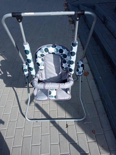 Huśtawka wolno stojąca idealna do domu jak i ogrodu. Bezpieczna metalowa konstrukcja, bardzo wytrzymała. Może też pełnić funkcję kołyski lub krzesełka do karmienia
