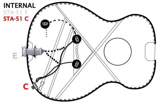 TAP STA-51C to przystawka do montażu wewnętrznego. Wyposażona w gniazdo Jack 1/4" ( 6.3mm). Dzięki przystawce możemy nagłośnić instrument nadając mu głośny, akustyczny sygnał wyjściowy.