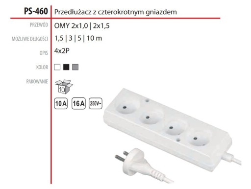4X УДЛИНИТЕЛЬ БЕЗ ЗАЗЕМЛЕНИЯ PS-460 5M