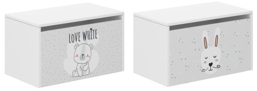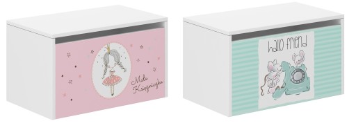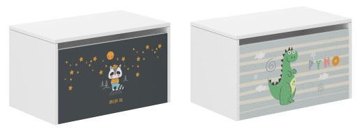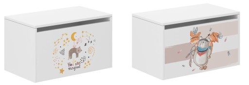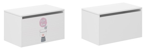 Pojemnik na zabawki to praktyczny i funkcjonalny mebel, który znajdzie swoje zastosowanie w każdym pokoju dziecięcym. Ergonomiczne wymiary zapewniają swobodne umeblowanie pomieszczenia. Skrzynia wykonana jest z płyty wiórowej kolor biały, wykończony okleiną. Front pojemnika posiada kolorowy nadruk, który ma ładne żywe kolory i jest zabezpieczony specjalnym laminatem aby nie uległ wyblaknięciu lub ścieraniu. Można bez obaw myć go ściereczką i płynem.