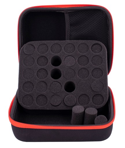 Kuferek zabezpiecza lakiery przed ewentualnym uszkodzeniem, dzięki temu, że jest usztywniany oraz wypełniony miękką pianką. Etui zapinane jest na zamek błyskawiczny, co ułatwia nam szybki dostęp do zawartości.