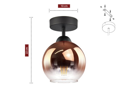 - Materiał klosza: Szkło w kolorze Miedziano - Transparentnym