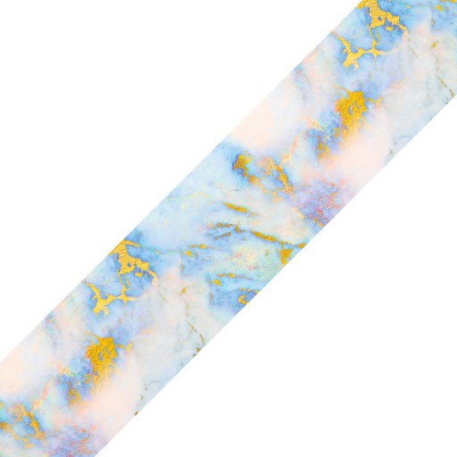 Folia transferowa z efektem marmurka w odcieniu turkusowego błękitu z elementami złota przeznaczona do zdobienia paznokci. To sposób na szybki, łatwy i efektowny manicure z efektem marmurka w odcieniach nieba.