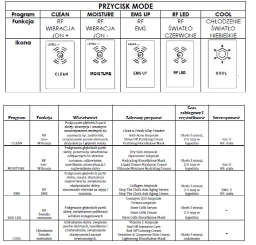 - Jonoforeza: jonizacja (+) dodatnia, jonizacja (-) ujemna - regulacja mocy