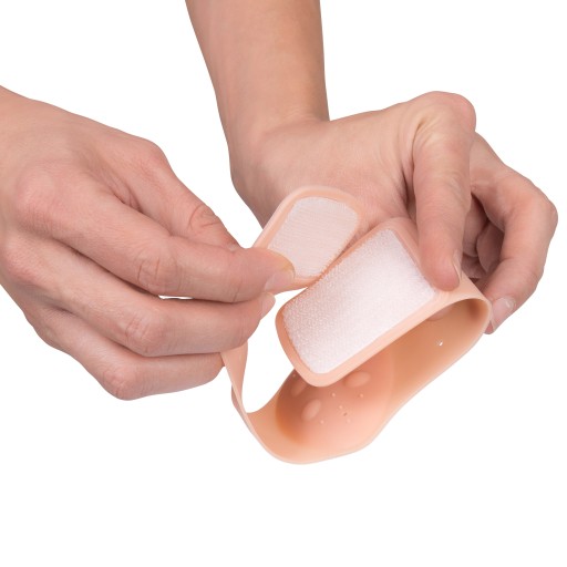 Wykonane z miękkiego i elastycznego silikonu, dobrze trzymają się stopy, nie powodują obtarć ani podrażnień. Żelowa poduszka z wypustkami podpiera sklepienie wzdłużne stopy, dając ulgę nadwerężonemu ścięgnu.