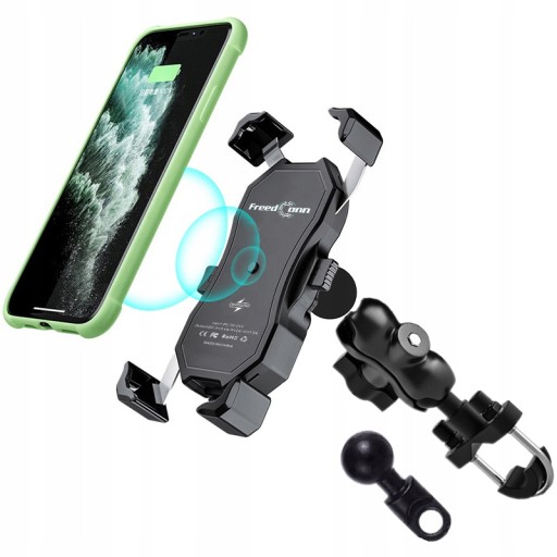 - Uchwyt FreedConn MC1W z ładowaniem indukcyjnym z 4 ramionami zakończonymi gripami, ładowarką USB, włącznikiem i kablem