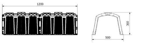 Wykonane zostały z PEHD (polietylenu wysokiej gęstości) metodą wtrysku tworzyw sztucznych. Użyta metoda produkcyjna pozwala uzyskać produkty o zwartej i lekkiej konstrukcji. Każdy tunel posiada ożebrowanie wzmacniające konstrukcję. Wysokość perforacji bocznej tunelu wynosi 300 mm. Pojemość pojedynczego tunelu wynosi 150 litrów.