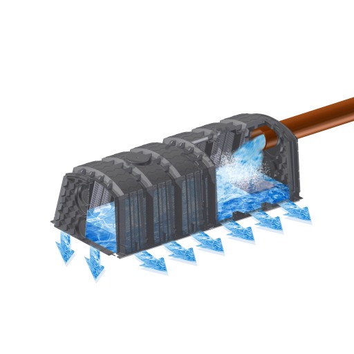 Tunel układamy w gruncie tworząc grawitacyjne złoża rozsączające. Na ścianach bocznych tunel posiada podłużne szczeliny, którymi ścieki jak i woda deszczowa może być rozsączana w gruncie.