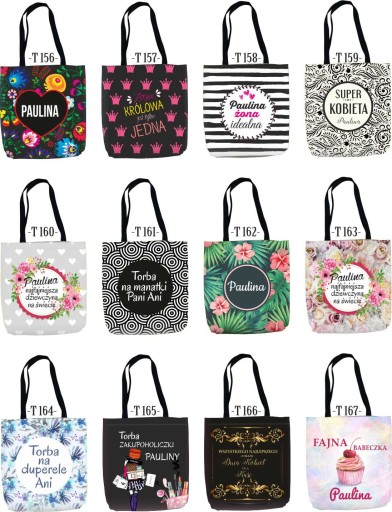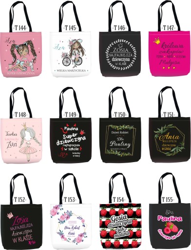 Przy zamówieniu proszę podać w wiadomości dla sprzedającego parametry produktu wraz z numerem wzoru, który mamy dla Państwa nadrukować na zamówionej torbie oraz imię.