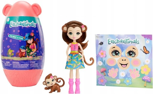 Odkryj magiczny świat Enchantimals z kolekcją zestawów do zabawy w formie uroczych upominkowych jajek! Każda kolorowa skorupka kryje lalkę Enchantimals (15 cm), figurkę zwierzątka i arkusz naklejek. Przyklej naklejki, by udekorować jajka zwierzęcymi pyszczkami. Do wyboru masz swoje ulubione postacie, takie jak Peeki Parrot, Sela Sloth, Merit Monkey, Andie Alligator i Cherish Cheetah. Dzieci pokochają otwieranie jajka i odkrywanie postaci ze świata Enchantimals.