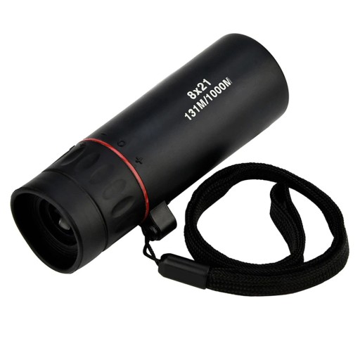 Monokular ze stałym powiększeniem 8x i średnicą obiektywu 21 mm. Niewątpliwą zaletą jest jego niewielka waga i wymiary. Dzięki temu zajmuje naprawdę bardzo mało miejsca w podręcznym ekwipunku i pozwala na zabranie go ze sobą w każde miejsce.