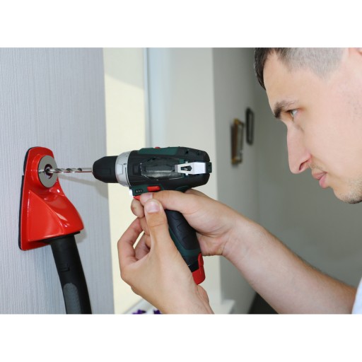 Prowadnica przyrządu Mechanic HomeDuster zapewnia łatwiejsze ułożenie wiertła pod kątem prostym.