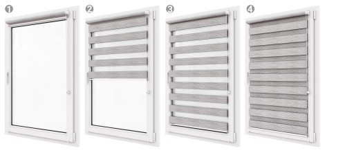 - Regulowany dopływ światła - dzięki naprzemiennym pasom tkaniny (pełne i przezroczyste)