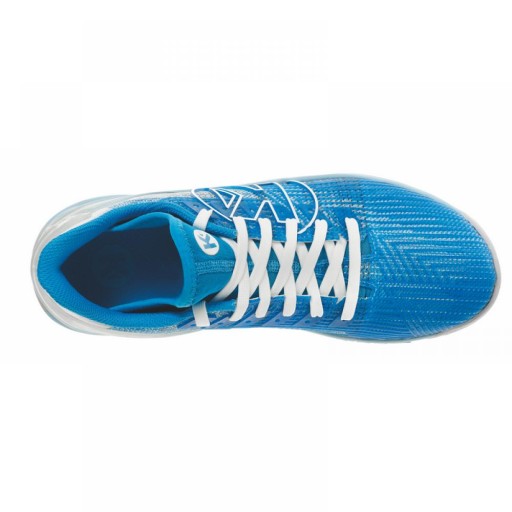 Omawiane buty do piłki ręcznej dla kobiet niebiesko-szare posiadają wtórnie spieniona piankę EVA, dzięki czemu podeszwa wyróżnia się znakomitymi parametrami użytkowymi. Technologia KINETIC POWER odpowiada za optymalną amortyzację wstrząsów, a także doskonałe odbicie gracza. Nieprzeciętną przyczepność obuwia do podłoża zawdzięczamy podeszwie MICHELIN.