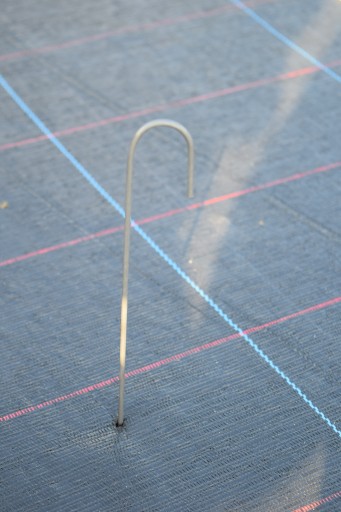 Ostre zakończenie szpilki z łatwością pozwala na przebicie grubej agrowłókniny czy maty szkółkarskiej bez użycia noża. Kształt harpuna powoduje mocne zakotwiczenie w gruncie i utrudnia wyciągnięcie kołka z podłoża.