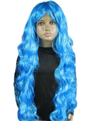PERUKA NIEBIESKA / NIEBIESKIE BARDZO DŁUGIE KRĘCONE WŁOSY DŁ. 90CM