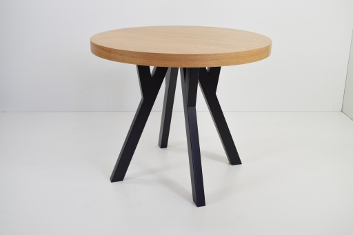 Mebel jest fabrycznie nowy. Blat wykonany z płyty MDF fornirowanej okleiną dębową. Nogi stołu to drewno bukowe malowane na czarny gładki mat. Blat lakierowany lakierem bezbarwnym chemoutwardzalnym odpornym na ciepło i alkohol. Do rozkładania stołu służy metalowa prowadnica łożyskowa, teleskopowa, podtrzymująca blat stołu oraz specjalne klamry spinające poszczególne elementy blatu by stół uzyskał prawidłową stabilność. Wkładki przedłużające (2x50 cm) należy przechowywać poza stołem.