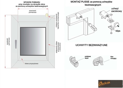 Montaż przy zastosowaniu uchwytów bezinwazyjnych dedykowanych do systemu , możliwe do montażu na oknach PVC , drewnianych i aluminiowych .