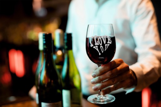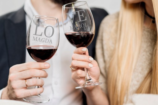 Eleganckie kieliszki do wina z grawerem.