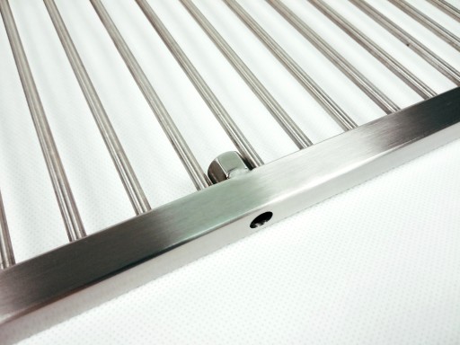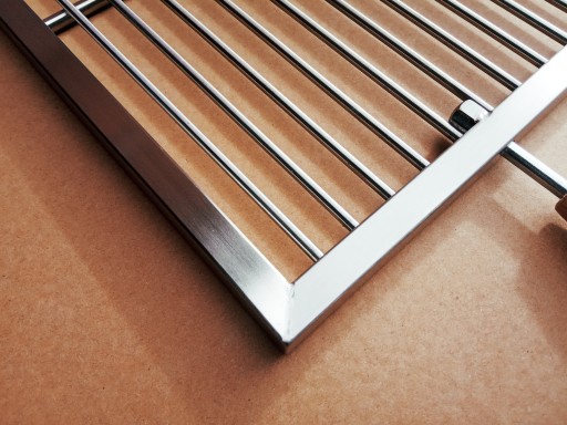 W przeciwieństwie do standardowych rusztów wykonanych z cienkich stalowych prętów powleczonych cienką warstwą chromu, nasz jest wykonany ze stali nierdzewnej gat.304 posiadającej atesty do kontaktu z żywnością.