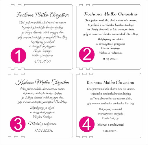 3. Dla kogo ma być podziękowanie (Matka Chrzestna, Ojciec Chrzestny, Babcia, Dziadek, Dziadkowie itp).