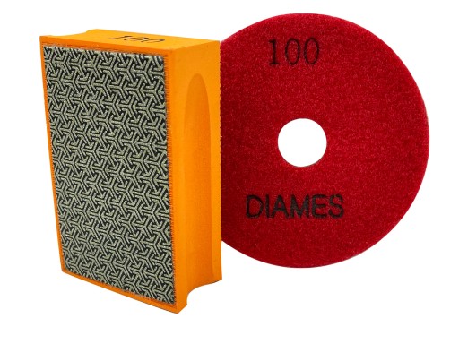 ZESTAW RĘCZNA KOSTKA POLERSKA DIAMENTOWA DO GRESU KAMIENIA # 50 ORAZ DIAMENTOWY DYSK POLERSKI GALWO #100 - 100 MM VELCRO