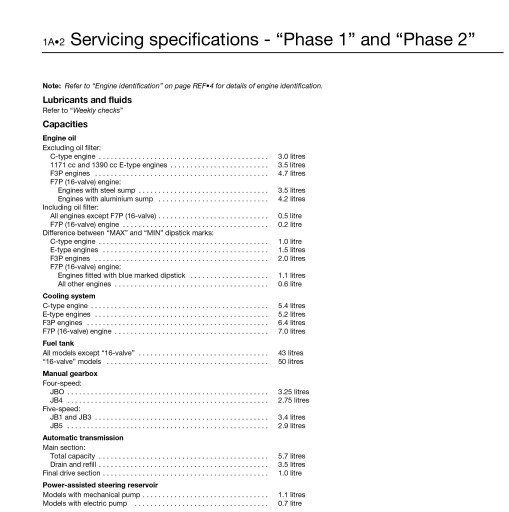 Petrol: 1.1 litre (1108cc), 1.2 litre (1149 and 1171cc), 1.4 litre (1390cc) and 1.8 litre (1764cc, 1783cc, 1794cc).