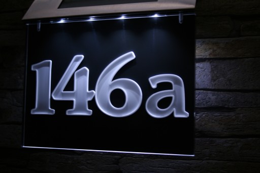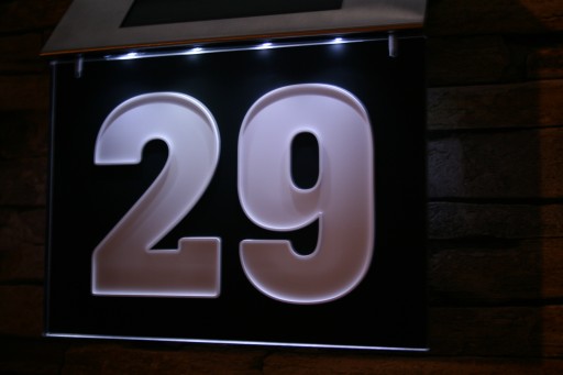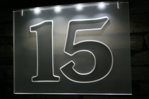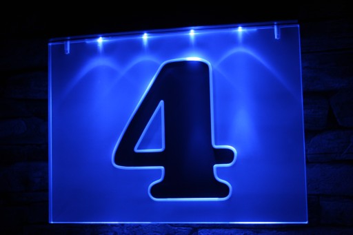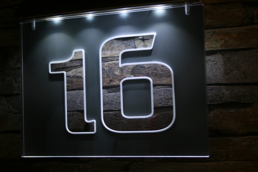 Przedmiotem aukcji jest podświetlany numer domu wykonany z odpornego na promieniowanie UV pleksi.
