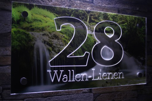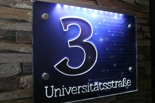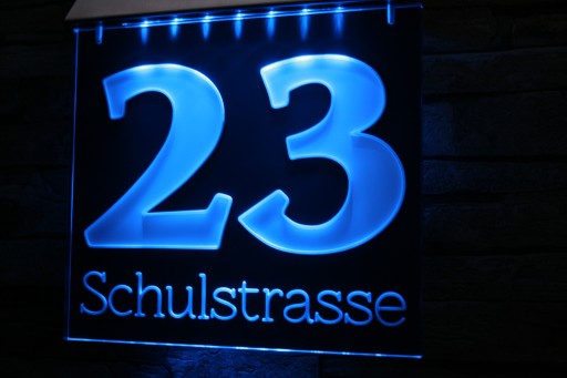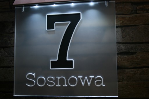 Aukcja dotyczy podświetlanego numeru domu wykonanego z odpornego na promieniowanie UV pleksi.