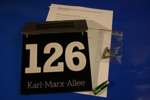 Podświetlany numer domu z modułem solarnym powinien być montowany na elewacjach dobrze nasłonecznionych (południowa strona).