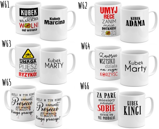 Aby móc zrealizować zamówienie jak najszybciej, prosimy o podanie podać numeru wybranego wzoru kubka oraz imienia lub innego napisu, jaki ma zostać umieszczony: