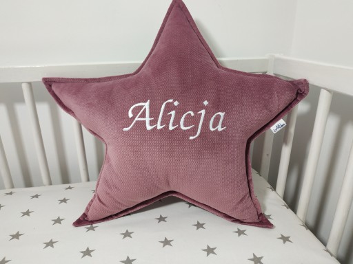 Piękna poduszka w kształcie gwiazdki wykonana z gładkiego velvetu. Mięciutka i milutka, będzie dopełnieniem każdego wystroju.