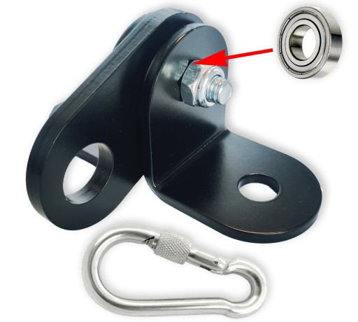 Niniejsza aukcja przedstawia 1 łożyskowane mocowanie huśtawki z dwoma otworami montażowymi o średnicy 12,5mm + Karabińczyk 8mm z zabezpieczeniem