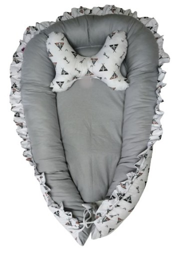 Kokon przeznaczony dla dzieci od 0-6 miesięcy. Do każdego kokonu dodajemy poduszkę Motylek GRATIS cały z bawełny. Kokon niemowlęcy może służyć jako leżak lub otulacz. Po ściągnięciu sznurkiem tworzy się wysoki brzeg. Kokon jest lekki i poręczny.Wykonany ze 100% bawełny, wypełnienie kulka sylikonowa, owata poliestrowa. Nie zaleca się prasowania. Prać w temperaturze 300C. Może służyć na kanapie, w łóżeczku, na podłodze, w łóżku rodziców. Materiały wszystkie posiadają atesty.