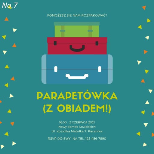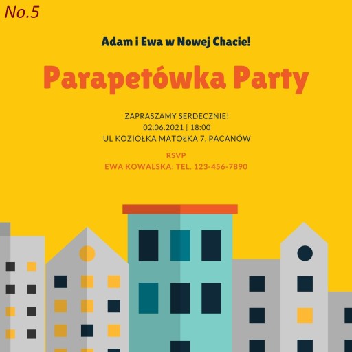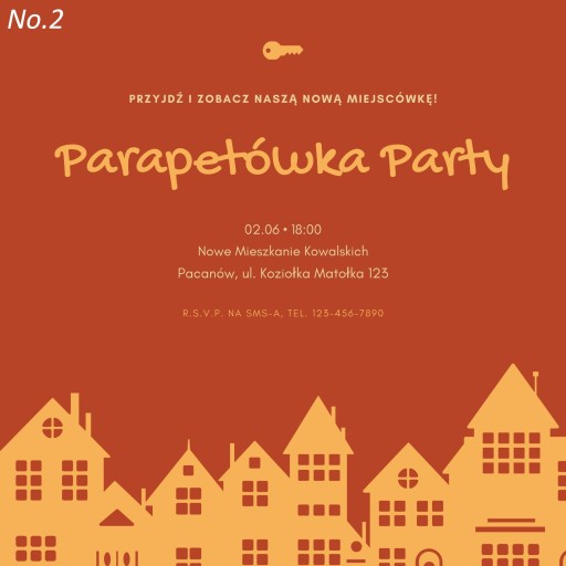 Poniżej zamieszczamy zestaw dostępnych, gotowych wzorów zaproszeń na parapetówkę. W przesłanym (po zakupie) formularzu prosimy o podanie numeru wybranego wzoru (numer ten znajduje się w lewym górnym rogu projektu).