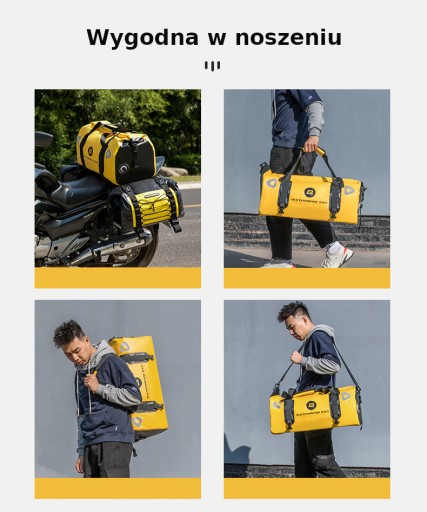 DUŻA POJEMNOŚĆ NA CODZIENNE POTRZEBY: Wodoodporna torba motocyklowa przeznaczona jest dla osób kochających podróże motocyklowe na świeżym powietrzu. Torba o bardzo dużej pojemności 55 litrów, do której zapakujesz wszystko czego Ci potrzeba. Już teraz zacznij swoją niesamowitą podróż.