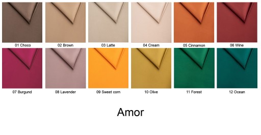 Amor Velvet to wyjątkowa tkanina o szerokiej kolorystyce, charakteryzuje się wodoodpornością oraz wysoką odpornością koloru na światło, co idealnie sprawdza się na zdobiących wnętrza domowych przedpokoi. Tkanina jest bardzo miękka i delikatna w strukturze drobnego meszku.