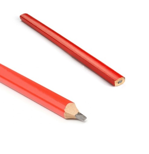 Klasyczne ołówki stolarskie w drewnianych czerwonych obudowach. Posiadają grube wkłady grafitowe rysujące wyraźnie widoczne linie na obrabianych materiałach. Ołówki stolarskie, do zaznaczania i trasowania na drewnie i materiałach drewnopochodnych.