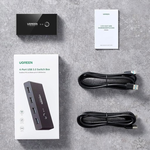 Ugreen switch box HUB przełącznik 4x USB 3.2 Gen 1 rozdzielacz USB na dwa komputery czarny (US216 30768)