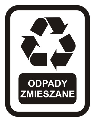 Przedmiotem aukcji jest naklejka EcoBin z oznaczeniem ZMIESZANE czarna na białym tle – 1szt