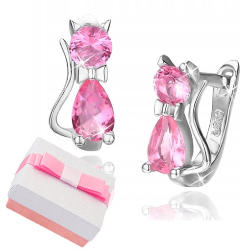 KOLCZYKI SREBRNE 925 DLA DZIEWCZYNKI KOTKI