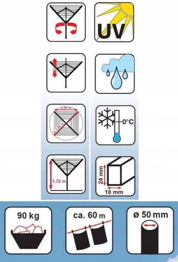 Mocna, bawełniana linka zastosowana do produkcji suszarki jest dodatkowo powleczona miękkim tworzywem, co zapewnia jej łatwe utrzymanie w czystości (wystarczy przetrzeć wilgotną szmatką)