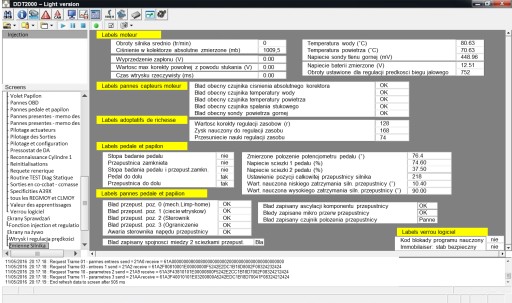 - podgląd parametrów pracy podczas jazdy tzw. bloki pomiarowe (np: ciśnienie doładowania, czasy wtrysków, korekcje wtrysków, synchronizacje rozrządu PD, temperaturę, przepływomierz, wskaźniki, itp.)