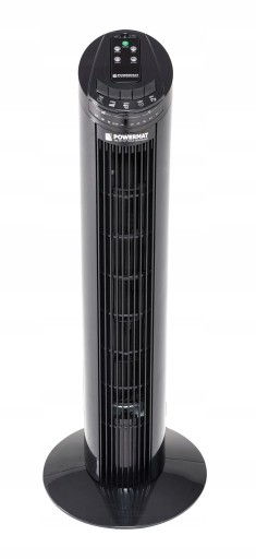 Wentylator kolumnowy (wieżowy) marki POWERMAT model Black Tower-75 z racji swoich wymiarów (wysokość 75cm) siła dmuchania jest większa przy mniejszej prędkości obrotowej. Dzieki takim wymiarom wentylator jest cichszy niż mniejsze wersje.