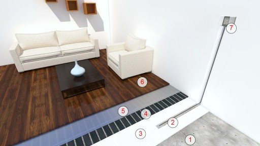 Prace montażowe można dokonać na każdym etapie remontu lub budowy. Ciepło przekazywane jest wprost do pomieszczenia. System grzewczy możemy zamontować na każdym etapie inwestycji czy remontu mieszkania. Folia sterowana jest za pośrednictwem termostatu pokojowego, który posiada wbudowany czujnik temperatury pomieszczenia oraz osobno zamontowany czujnik temperatury podłogi. Przy montażu pod panele podłogowe stosujemy folię o mocy 110 [W/m2], która rozgrzewa się w szybkim tempie do ok. 30℃ co przekłada się na komfort.