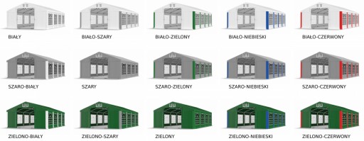 biały, biało-szary, biało-zielony, biało-niebieski, biało-czerwony, szaro-biały, szary, szaro-zielony, szaro-niebieski, szaro-czerwony, zielono-biały, zielono-szary, zielony, zielono-niebieski, zielono-czerwony